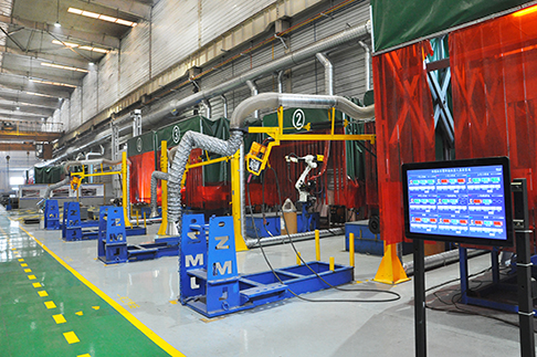中部槽智能焊接機(jī)群,可實(shí)現(xiàn)機(jī)器人與溫控系統(tǒng)聯(lián)動,確保預(yù)熱溫度滿足要求,保證焊接質(zhì)量